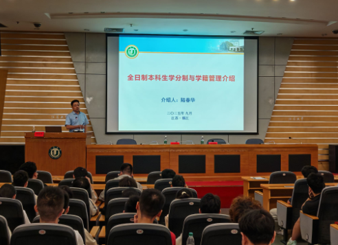 Ni Rongzhen introduced the management regulations for undergraduate students at Jiangsu University. Lu Chunhua interpreted the credit system and student status management for full-time undergraduates.